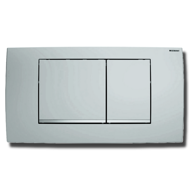 Przycisk spłukujący Geberit Twinline 30 Unifix chrom matowy z powłoką easy-to-clean 115.899.JQ.1 przycisk chrom matowy z powłoką easy-to-clean przeznaczony do spłuczek podtynkowych Geberit Twinline - Unifix, Kombifix, UP130, stary typ. Przycisk 115.899.JQ.1 został wyposażony w powłokę easy-to-clean, która ogranicza osadzanie się zabrudzeń i kamienia, ułatwiając codzienne czyszczenie i utrzymanie estetycznego wyglądu przez długi czas. W zestawie ramka mocująca, 2 popychacze i elementy mocujące. Wymiary przycisku 340 x 185 x 32 mm. Zastępuje przycisk Twinline 30 nr kat. 115.899.KN.1, który został wycofany z produkcji.